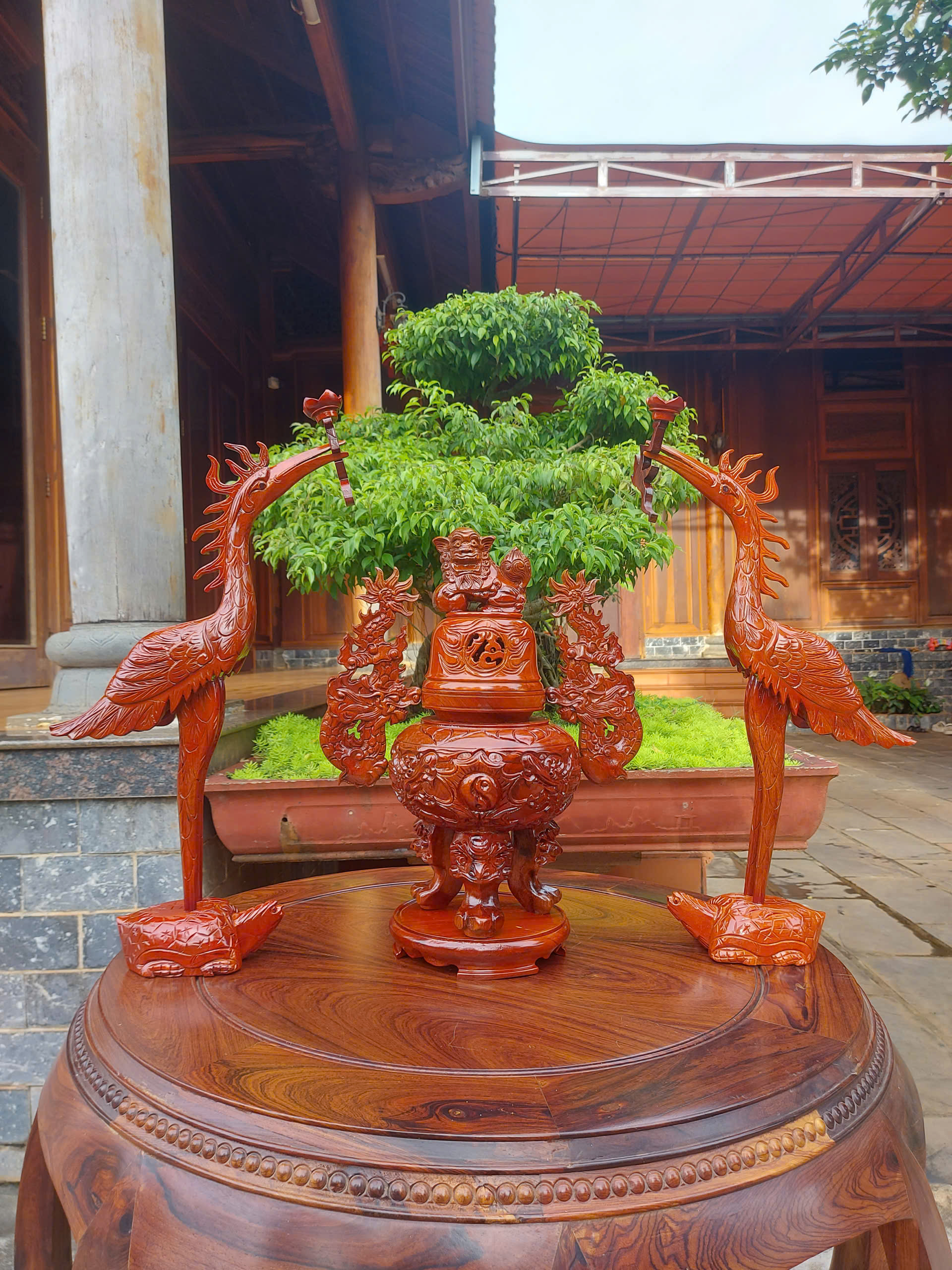 ✔ Bộ đỉnh tam sự món gồm: 1 đỉnh cao 40cm + 2 hạc cao 55cm Thích hợp dùng cho ban thờ treo, thờ thần tài, ban thờ nhỏ hơn hoặc bằng 1m55.